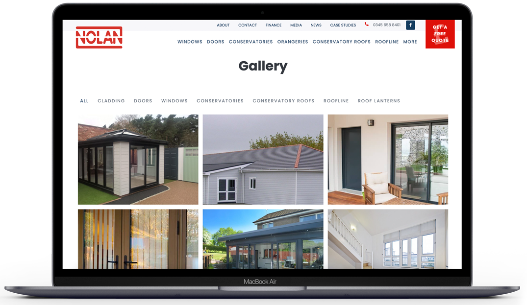 The new website was stylish and sleek, combining white space with brand appropriate colours and stunning lifestyle imagery. Copy-written content was produced in liaison with the client to ensure the company’s key selling points were correctly implemented, accurately reflecting Nolan as the marker leader than they are.